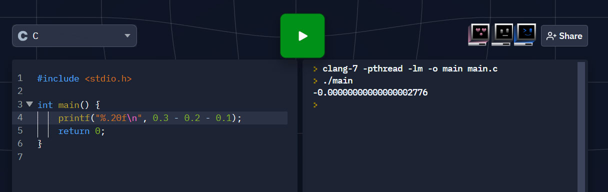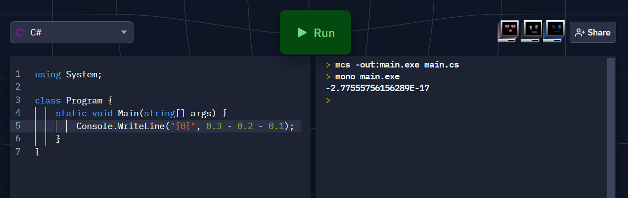 때문에 0.3 - 0.2 - 0.1 의 계산 결과가 0이 아닌 적당한 근사값로 계산되며,